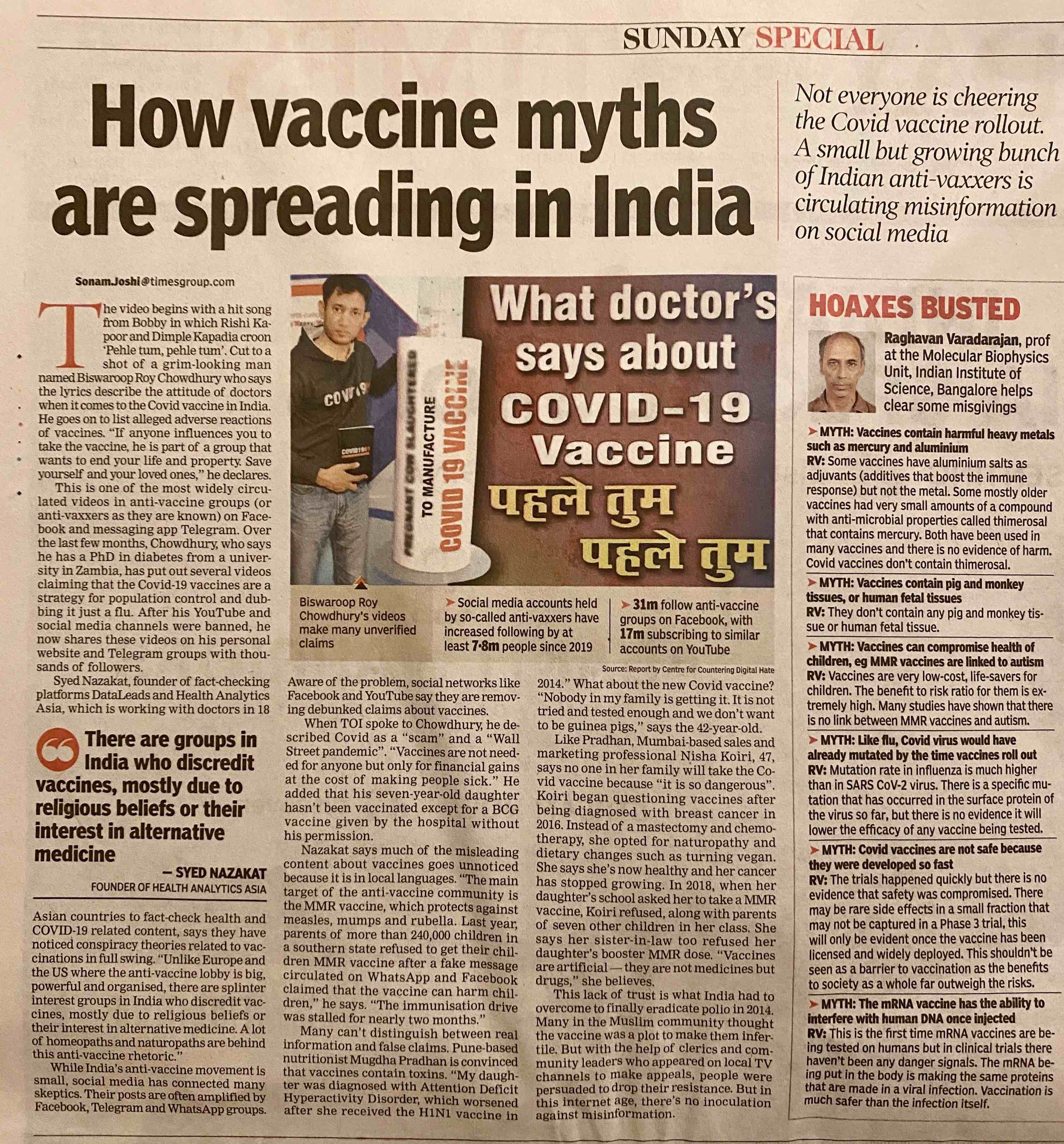 *添付の新聞記事は、昨年12月のもの。ワクチンに関する流言飛語に対し、ラグヴァンが回答している。