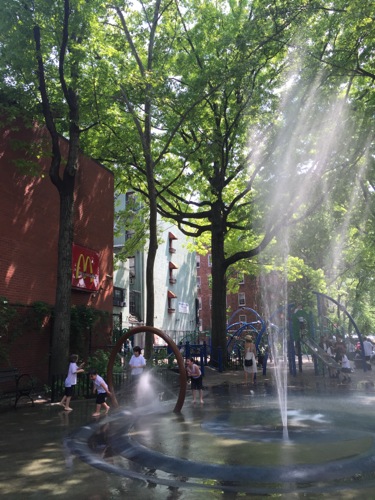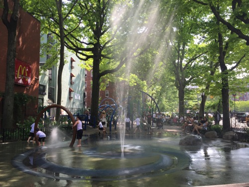 公園では、子供たちが水遊びをしている。なんだか、贅沢な遊びだと、水不足のインドを思いつつ。