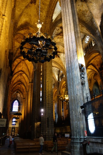 1450年に落成したという、カタルーニャ・ゴシック様式の大聖堂。歳月を重ねて燻されたような色合いがまた、荘厳な空間をよりいっそう威厳あるものに感じさせる。
