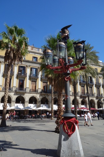 ふらりと歩くうちにも、またしてもレイアル広場にたどりついた。前回、近寄って撮影していなかった若かりしガウディ作の街灯を撮影。
