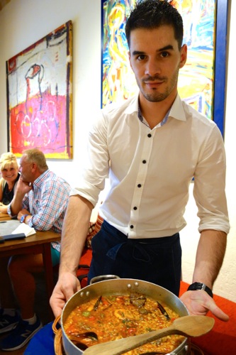 ◎シーフードのパエーリャ。思わずお兄さんの方にフォーカスしていしまい、パエーリャがしっかり撮れていない。