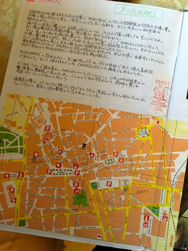 フィゲラスの観光案内所でもらった地図を貼り付けたページ。フィゲラスに1泊したあと、カダケスへと向かった。