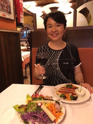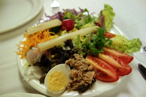◎想像以上にヴォリュームがあったサラダ。ホワイトアスパラガスのサラダと、レストランの特製サラダ。日々、オリーヴオイルを摂取しすぎなので、バルサミコ酢さえもかけず、もうそのままバリバリと食べる。