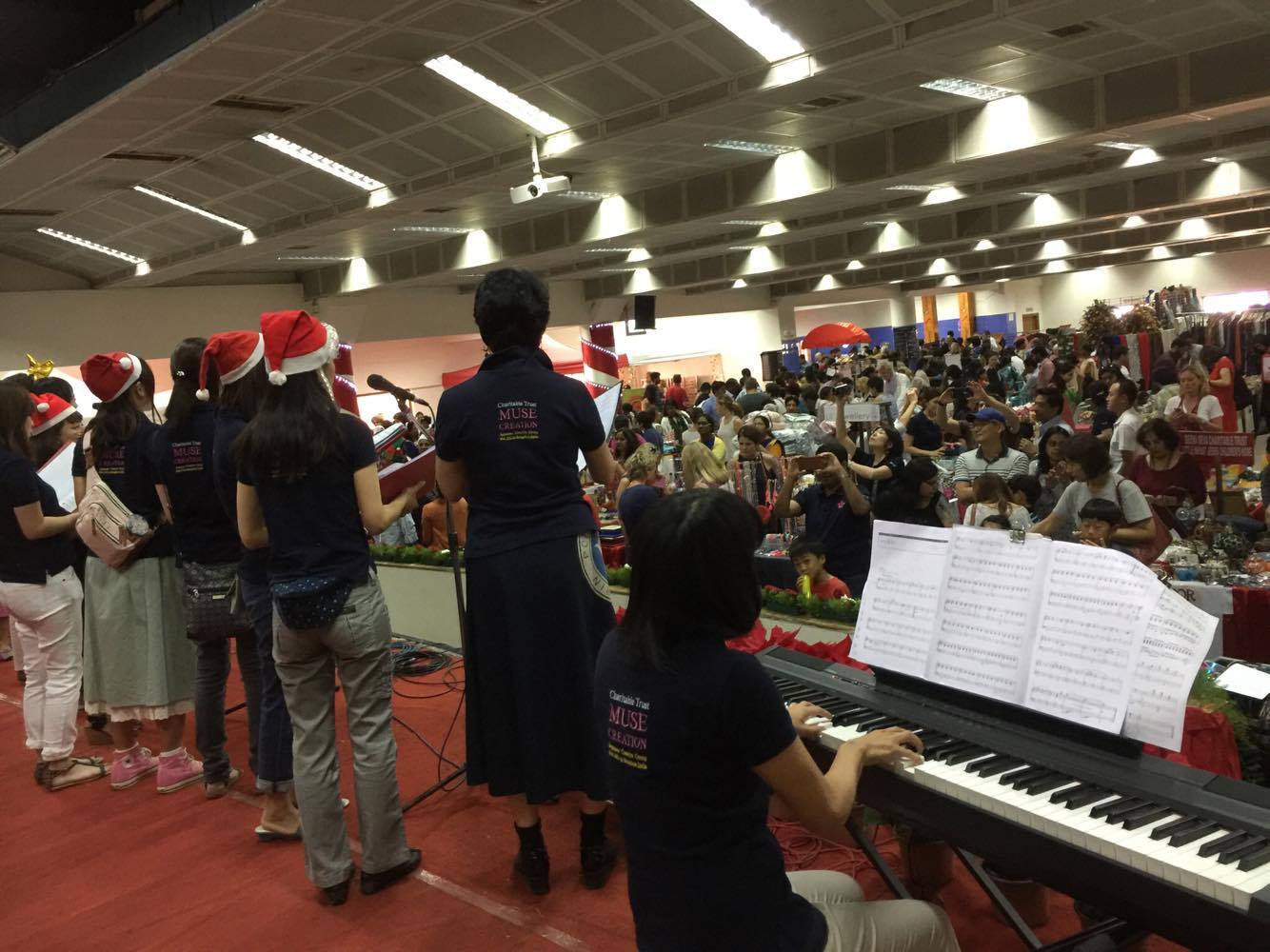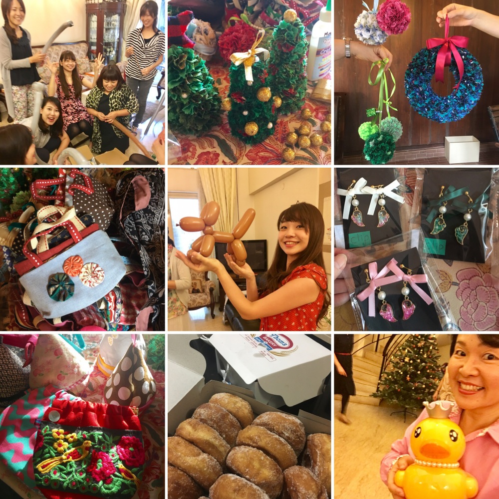 バザール前は木曜、金曜の両日、サロン・ド・ミューズをオープンして、準備を行った。チーム・ハンディクラフトの作品は、クリスマスを意識したものも多数。ミューズ・クワイアのメンバーは歌の練習のあと、アートバルーンの練習だ。