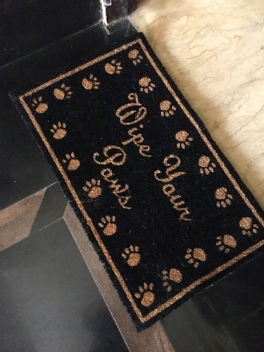 ついついペットショップのヴェンダーで買ってしまった玄関マット。絵的に犬のpawだと思われるが、まあ猫も似たようなものである。というか、きちんと拭いてほしいのは、人間の靴の裏、ではあるのだが。
