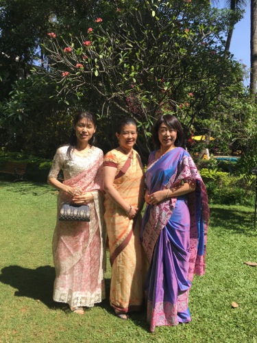 ミューズ・クリエイションを創設してまもないころから始めたサリーを着用してのランチ、略してサリーランチ。サリーを購入したものの、あまり着る機会がない人が多いことから、ではみなでサリーを着て集まりましょうと始めたのが、契機だったように思う。