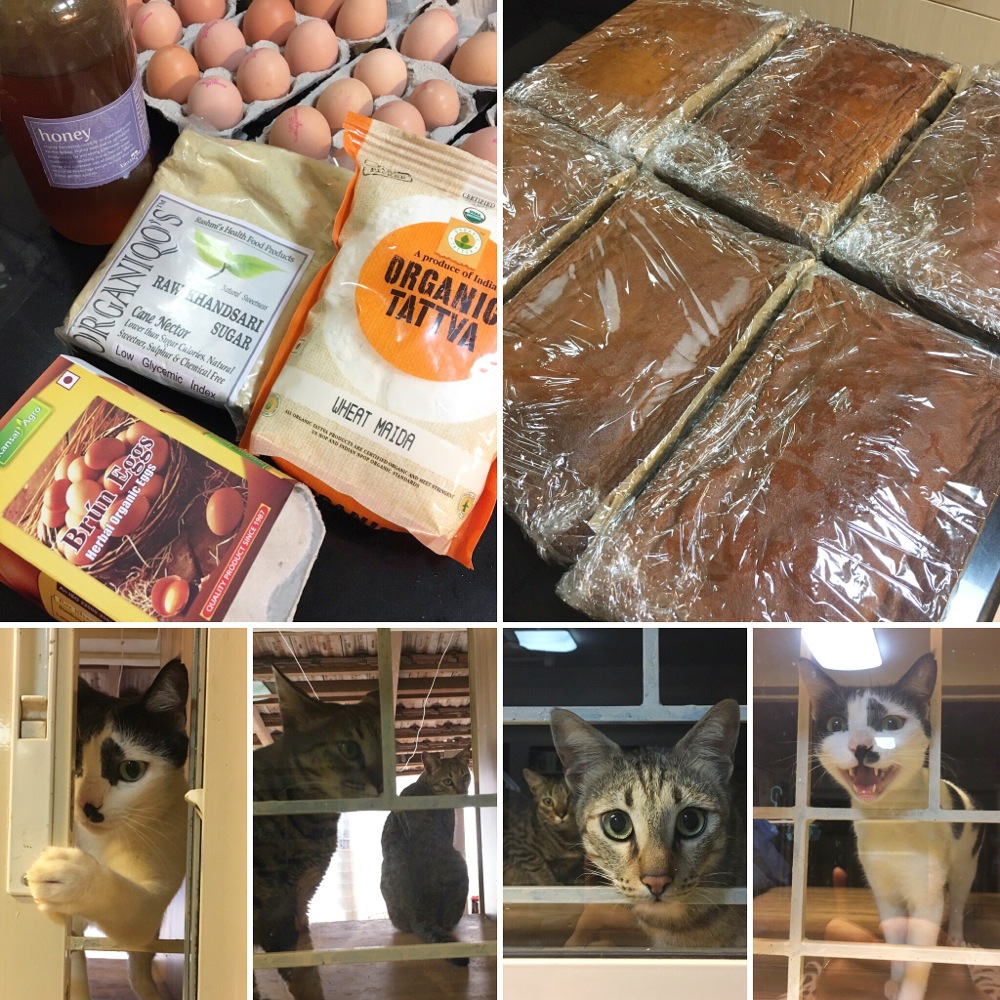この日、猫らは朝から庭に閉め出されており、室内立ち入り禁止。夕刻になると、カステラの匂いに誘われて、次々に台所の窓からのぞき見ている。ちなみに猫ら、甘いおやつはいけないとはわかっているが、たまに切れ端などを少し与えると、喜んで食べる。カステラ好き、のようである。