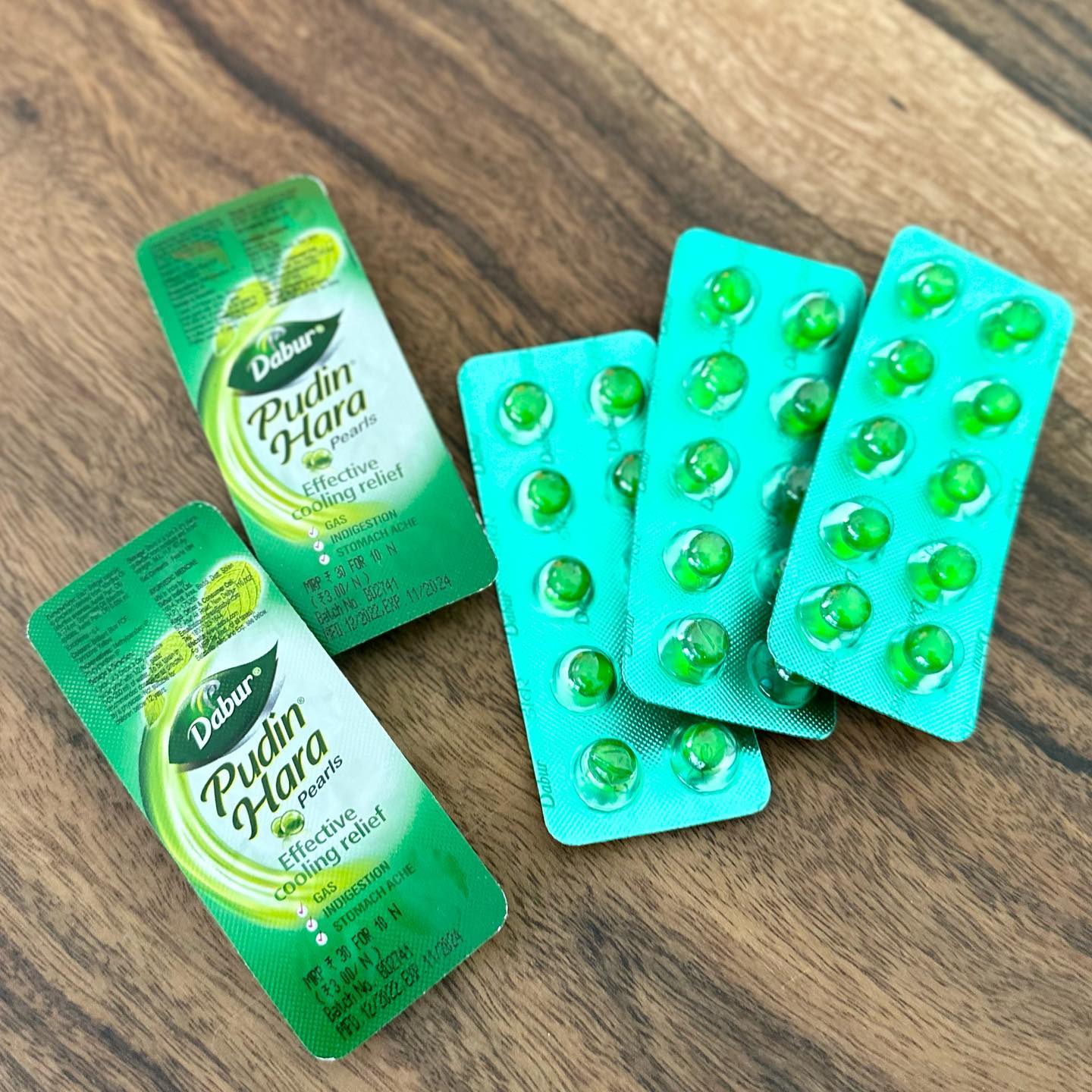 外食で食べ過ぎたとき。二日酔いで具合が悪いとき。乗り物酔いでぐったりしたときなど、爽やかなミントの香りが、胃の不快感を速やかに取り除いてくれる。脂っこいものを食べたとき、濃厚なインド料理を食べたときなどにも、ぜひ一粒二粒、たっぷりの水と摂取したい。げっぷ(失礼!)が爽やかなミントの香りに変化する。