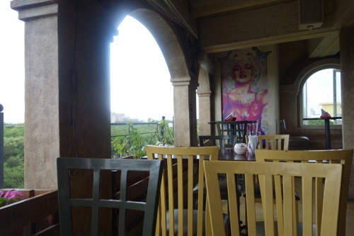 この建物、現在随所で店舗の新築工事が行われているのだが、最上階にあるBARの眺めがよいとの噂をインド人の友人から聞いていた。昼間もオープンしていて、コーヒーも飲めるとのことだったので、立ち寄ってみることに。