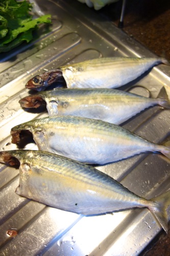 見た目、日本人的にはかなり許せない感じだが、丁寧に掃除されていて新鮮だ。サバというよりは、アジに近いのか。比較的こぶりである。