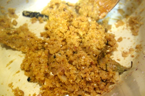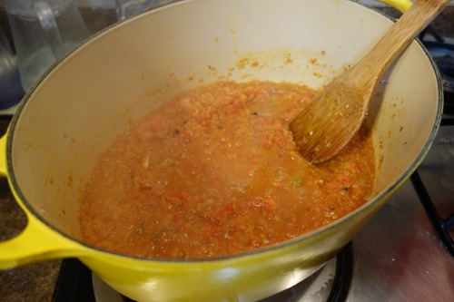各種スパイスを加えたあと、ショウガとニンニクのペーストを。今日はそれぞれをすりおろすのが面倒で、お手軽パックを使用。