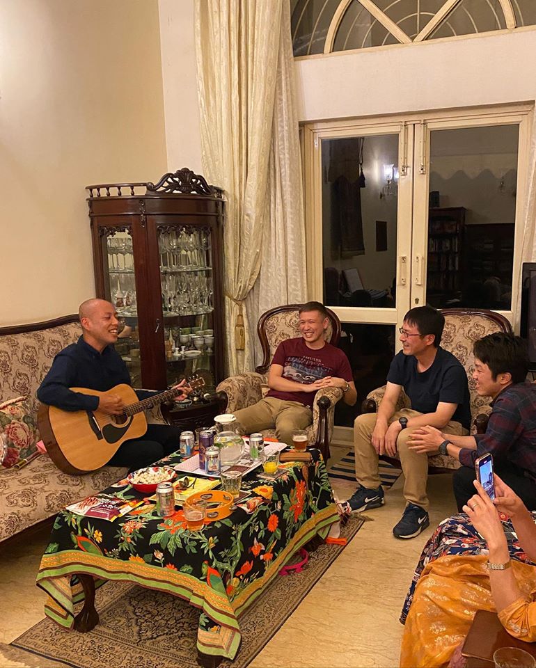08: ギター持参で来場の九州沖縄県人会幹事。これは、かなり本気度が高いぞ! と期待。が、バンガロールに来てギターを始めたらしく、しかもこの宴に向けて数日間特訓をしたらしい1曲を披露してくれた。「オーシャンゼリゼ〜!」みんな、選曲が渋い。