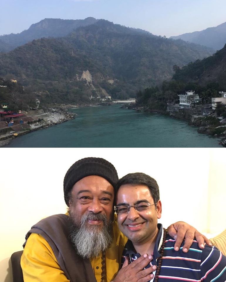 09: 我が夫、リシケシのガンジス川ほとりにて。世界的に有名なスピリチャルリーダー、Moojiと過ごすありがたき時間を享受でき、本当によかった。わたしも誘われていたのだが、この旅は、夫が一人で赴くべきと妻は思った次第。