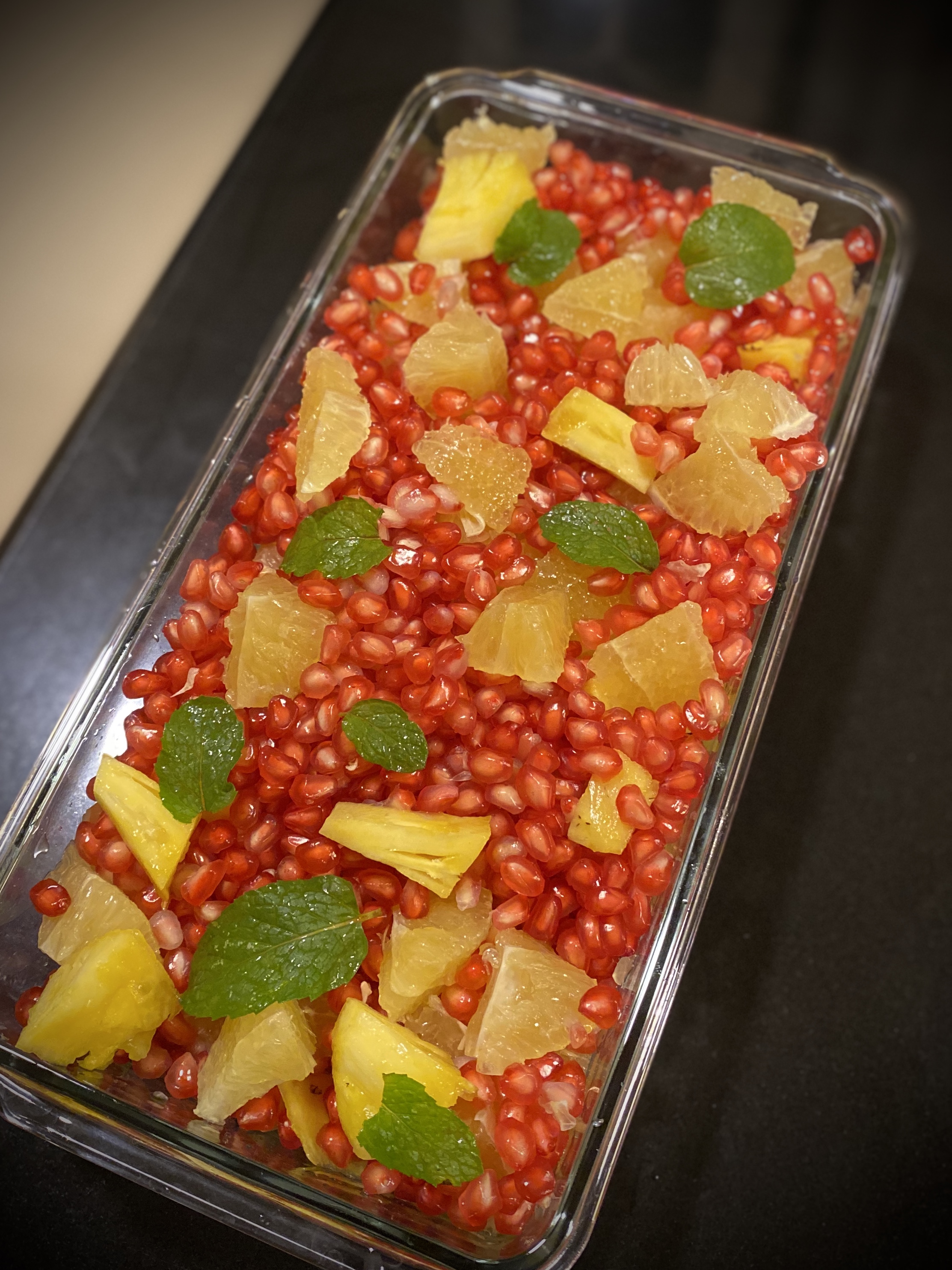 イチジク、ライチー、バナナにストロベリー。小さなイチジク、熟するのを待つ。
