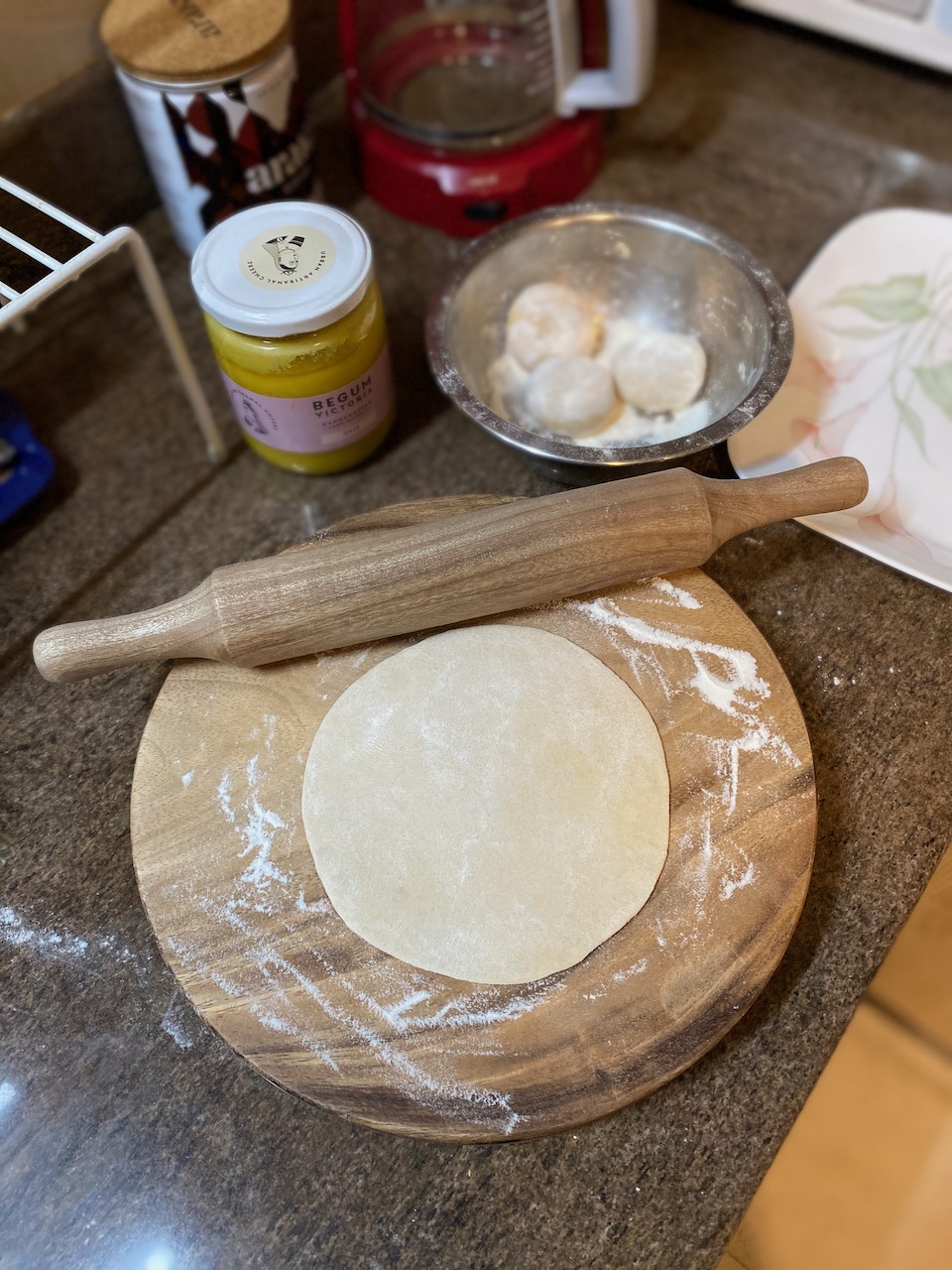 しかしバターたっぷりのリッチなペイストリーを食べ続けていては身体によくない。ゆえに、ATTA(全粒小麦粉)でチャパティを作り、ギーとココナッツシュガーをかけて食べることもある。ギーは身体によい油脂である。多分、これが腸のためには最もよい主食かもしれない。