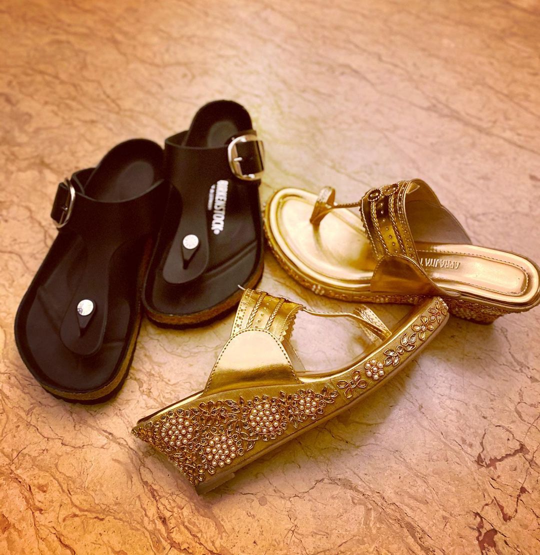 さらには、ダンスに備えてビルケンシュトックのサンダルを履いていたら、「まさかそのサンダルで出かけるつもり? エレガントじゃない!」と憤慨し出す。サリーの丈が長いから、そんなに目立たないし、よかろうもん……と思うのだが、夫は厳しい。