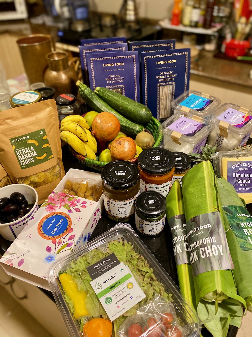 最近、利用しているサーヴィスのひとつ、Living Food。まだ、試していない商品も多々あるが、今のところのお気に入りは、生鮮野菜もさることながら、各種パスタやフレッシュチーズ、インドならではのスナックなど。