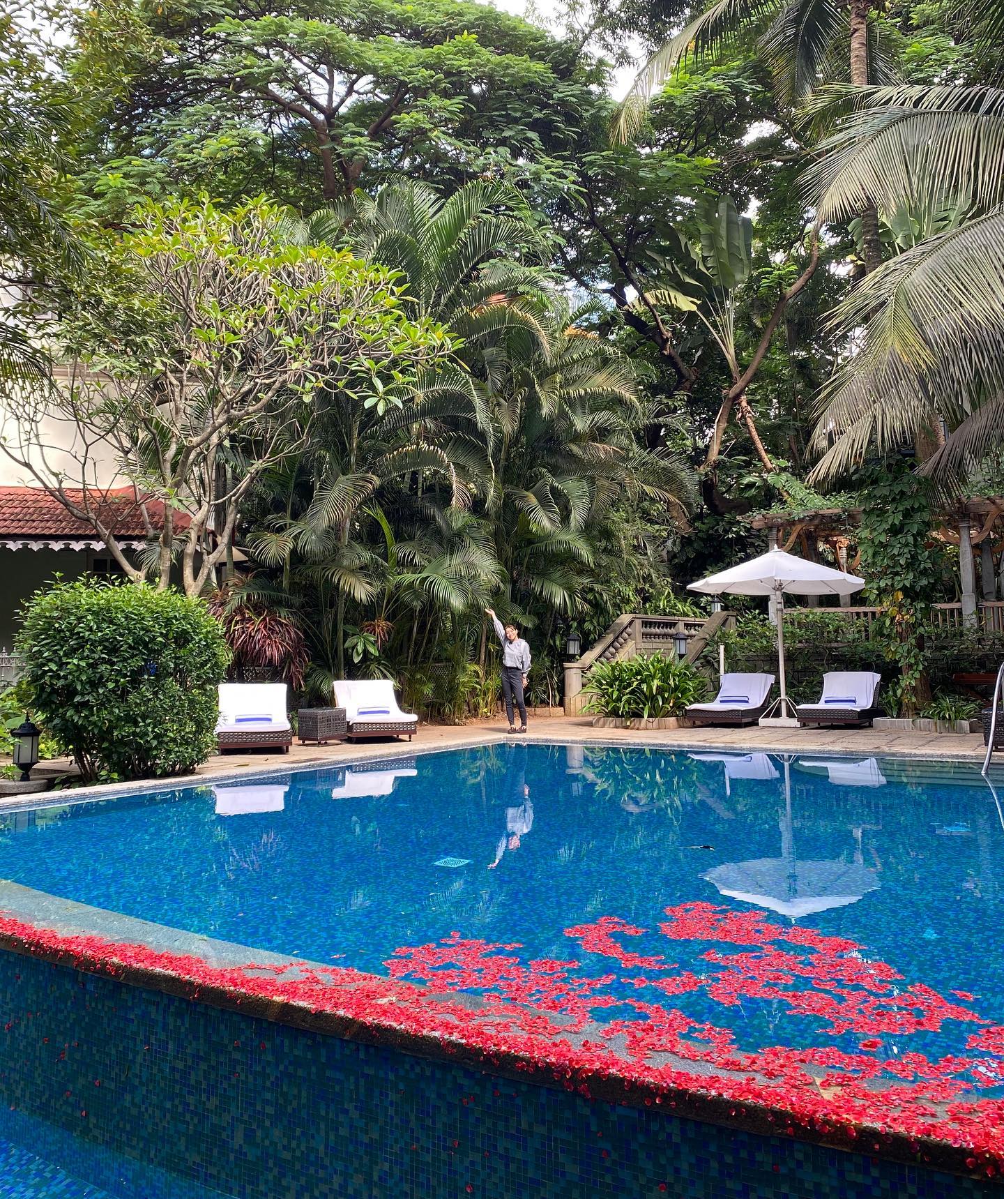 限られた時間のなかで、しかし優雅なひとときは大切。リゾート内を巡りながら、ガーデン・シティと呼ばれていたバンガロールの背景を語る。