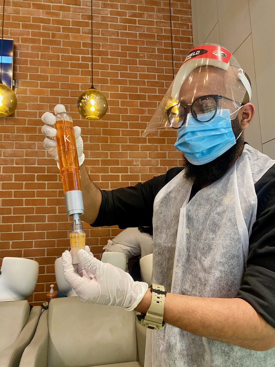 ・使用されているのは、ケラスターゼ(フレンチ・コスメ)。個人的にはアーユルヴェーダ的自然派コスメが好きなのだが。