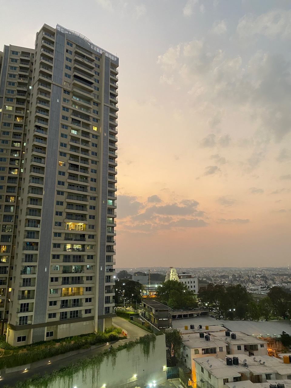 会場は、市街西部のPhoenix Kessaku。まさに日本語の「傑作」から取られた名前だ。久しぶりに高層から、バンガロール市街を見下ろして心地がよい。一隅からは、世界最大の給食センター「アクシャヤ・パトラ」の母体でもある「ハレ・クリシュナ」のイスコン寺院も見下ろせる。