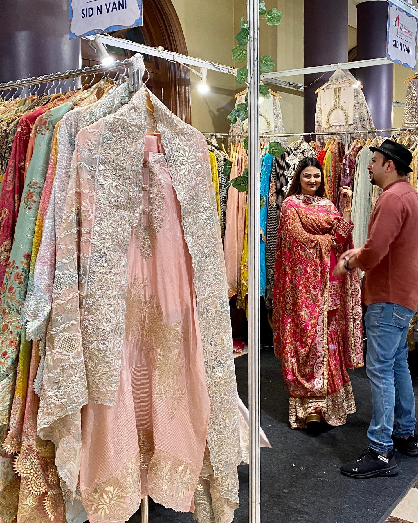 友人のBarkha(写真中央)が主催するファッションバザールをチェックしに、Taj West Endへ。