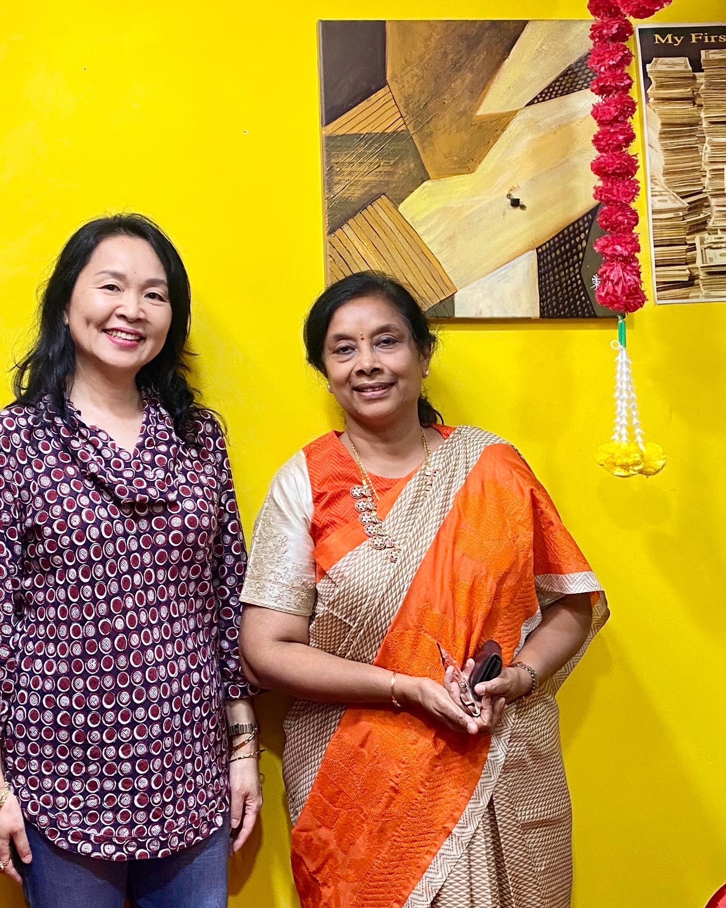 アポイントメントもなしに、急に訪れるのは少し憚られたものの、店頭にはクラシックカーが並んでいてお祭り&歓迎ムード満点だ。店内に入ると受付スタッフに声をかけられたので、上記の件を伝えたところ、Triveniにつないでくれた。ちょうどプージャーの最中だということで、わたしも招き入れていただく。本来であればサリーなど正装であるべきところ、カジュアルすぎる服装で恐縮だったが、運良く立ち会えて光栄だった。