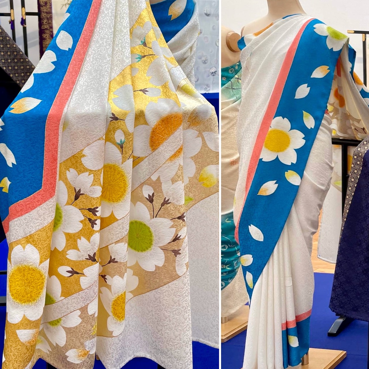 🇯🇵わたしが「京友禅サリー」デビューを果たしていたころ、折しも本場の京都では、「京友禅のきもの芸術展」が開催されていた。振袖や訪問着など、200点ほどの着物が展示される中、21枚の新作サリーが会場を彩っていたとのこと。