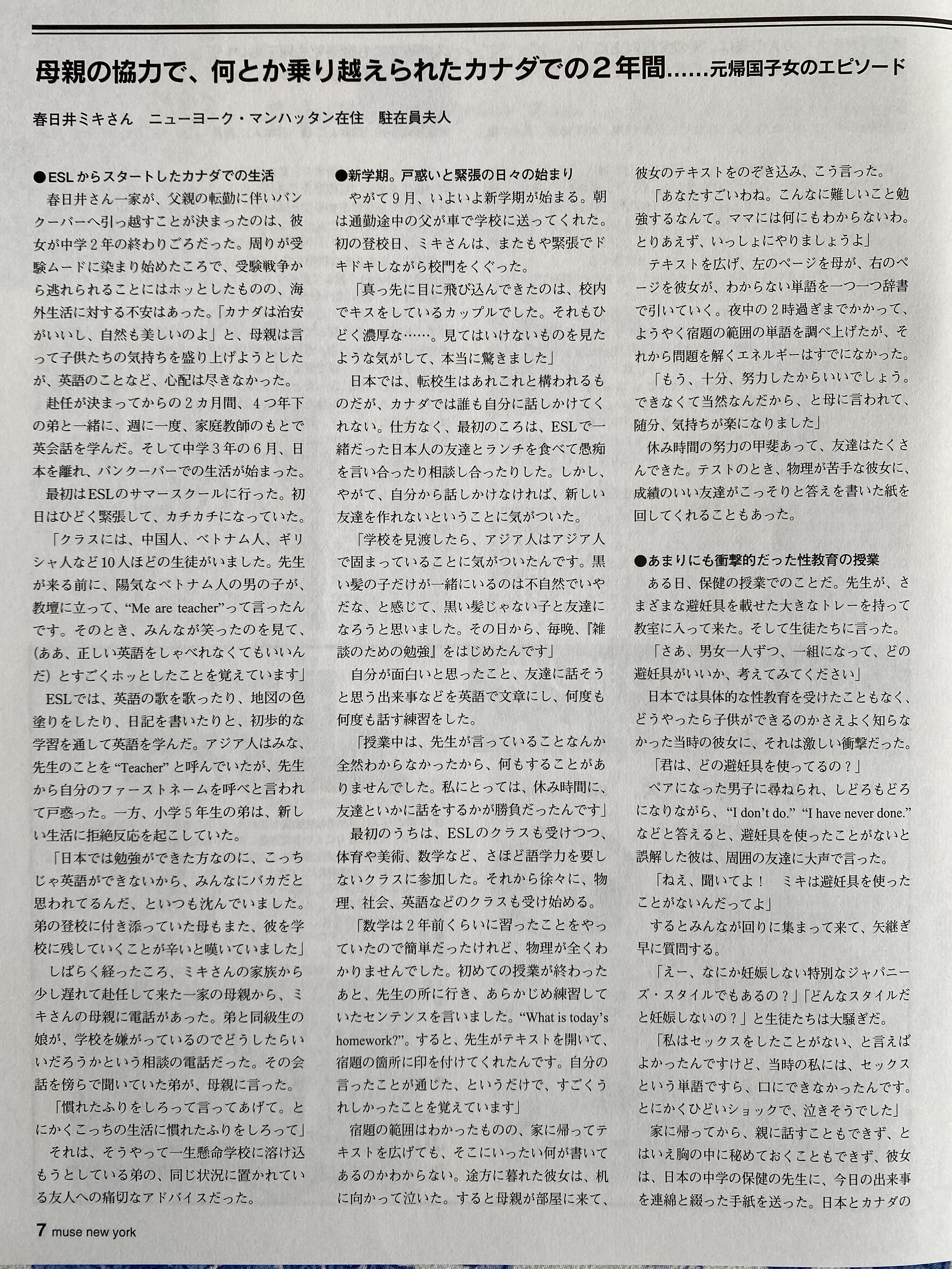 紙媒体としての最終号のテーマは「異国で子どもを育てるということ」。ニューヨーク在住時、わたしは日本人駐在員社会とはほとんど交流がありませんでした。しかし、帰国子女問題については、当時から強い関心を持っていました。同号の取材を行っていた時期の9月11日。世界同時多発テロが、わたしの住んでいるニューヨーク、そして夫が暮らすワシントンDCを襲いました。それは筆舌に尽くしがたい、衝撃的な出来事でした。