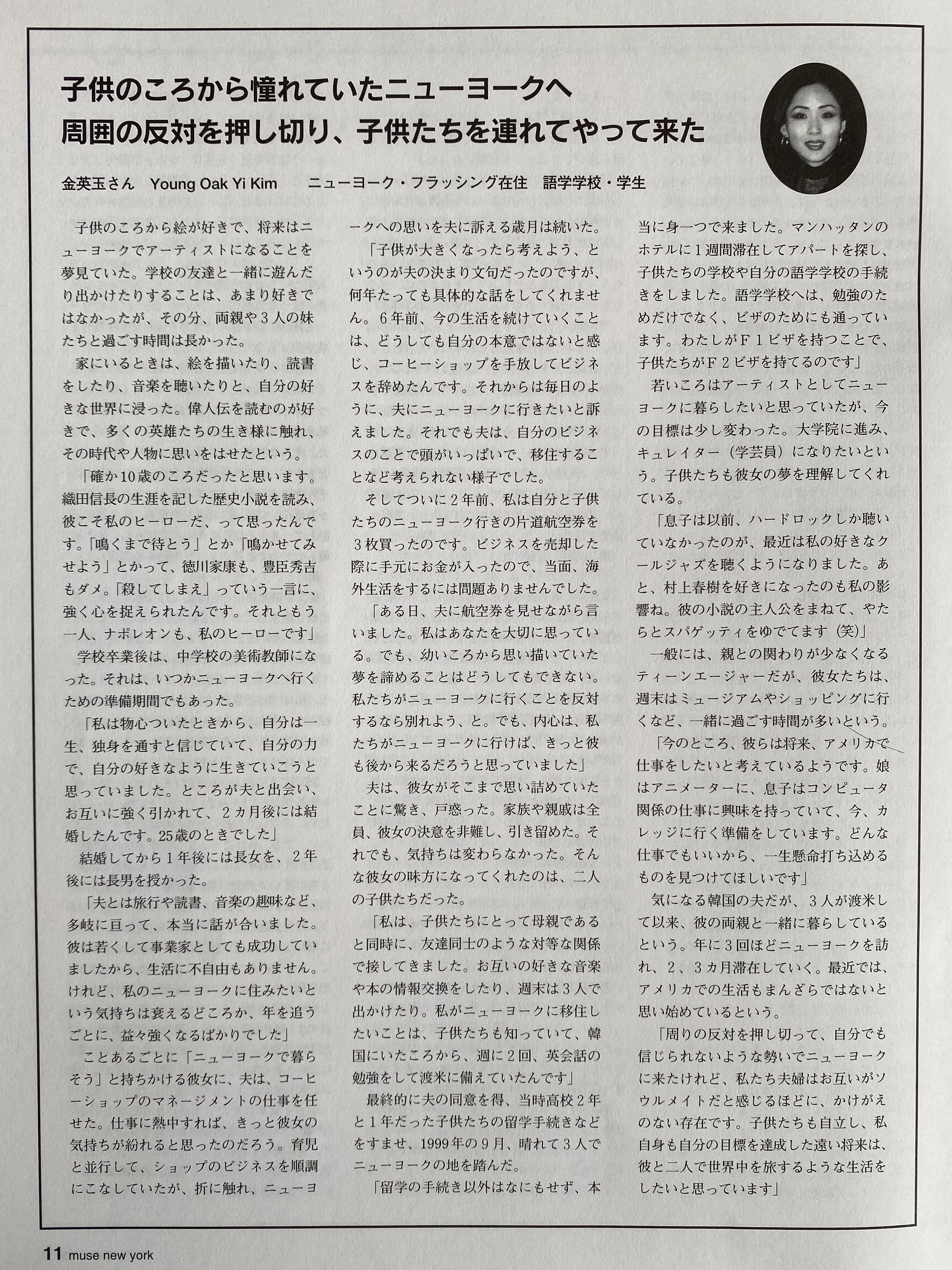 20年ぶりに言葉を交わしつつ、しかし彼も、わたしも当時と変わらず、思うところを発信し続けているということがわかり、うれしく思った。当時、彼は日系の新聞社に勤務する傍ら、個人的にミニコミ誌を発行していた。一方のわたしは、日系出版社の広告営業を経て、自分で出版社を立ち上げ、『muse new york』というフリーペーパーを出版していた。