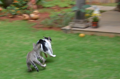 3匹の猫だけではない。夫はアパートメント・ビルディングに住み着いている2匹のメス猫、ROCKYやJACKの血縁でもあるモカとインヤンを可愛がっていて、餌を与えていた。