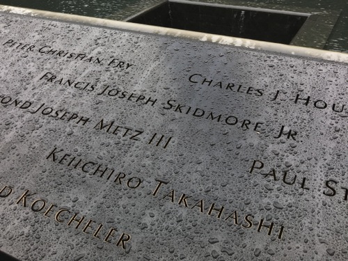 二棟のビルディングの跡が、それぞれに、このようなプールになっている。周囲には、亡くなった人たちの名前が刻まれている。