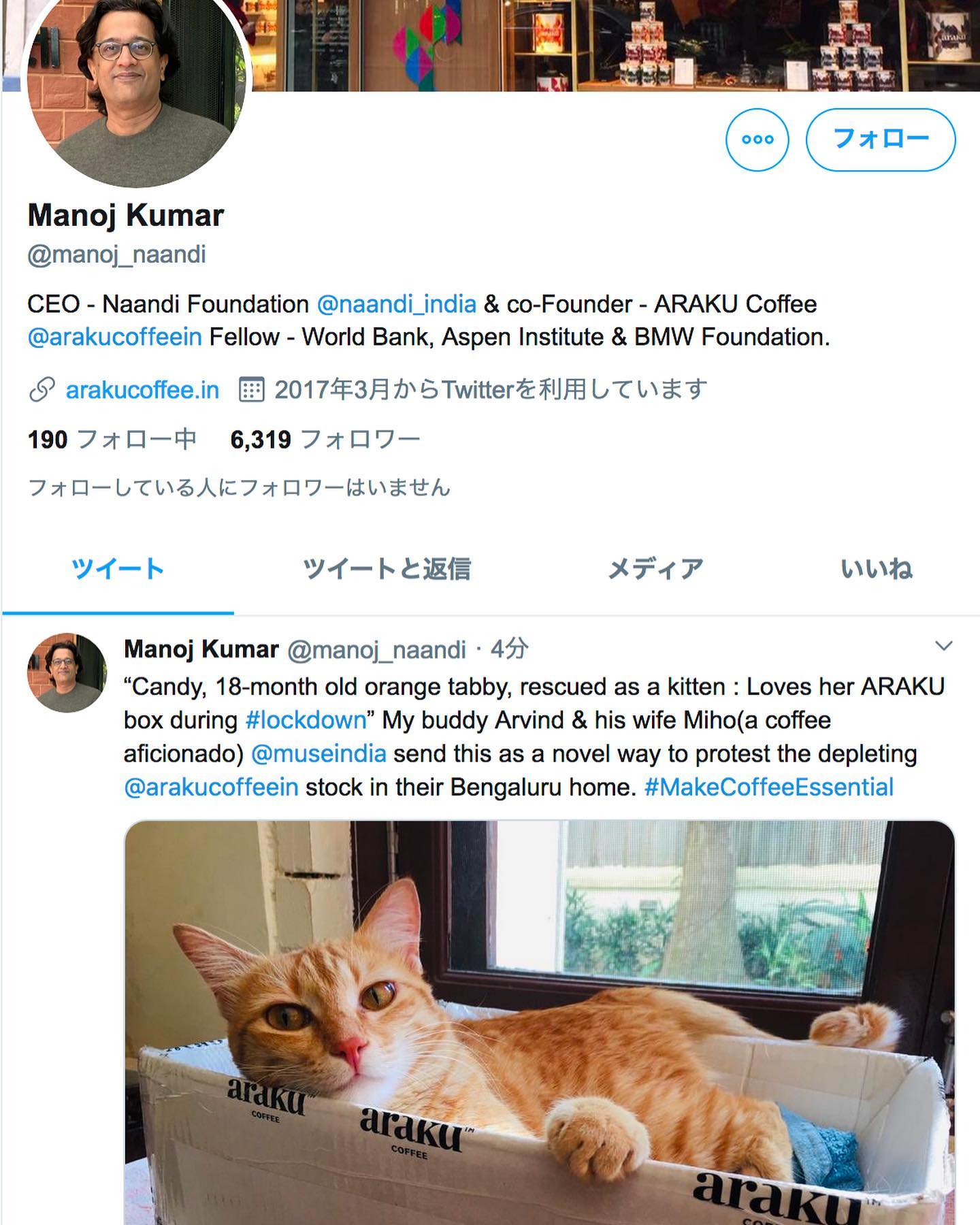 マノージが手掛けるビジネスのひとつ、ARAKU COFFEEについては、昨年から何度か紹介してきた。『ミューズ・チャリティフェスト2020』のために、マノージが撮り下ろしてくれた動画をご覧になった方もいるだろう。