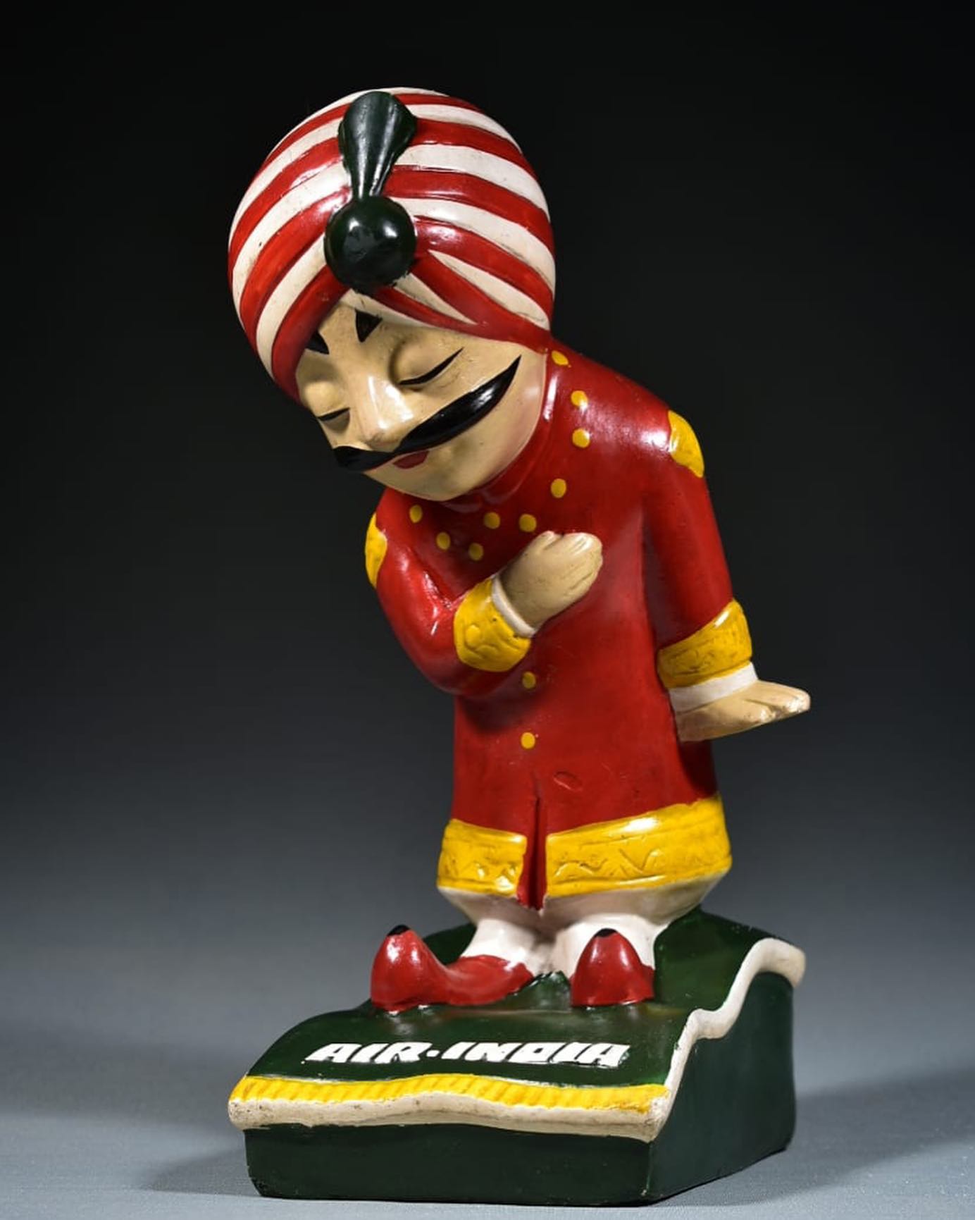この人形は、エア・インディアのマスコット、マハラジャくん。おりしも前々日の25日、新居の家具や調度品を調達している骨董品店のオーナーから、マハラジャくんの写真が送られてきた。