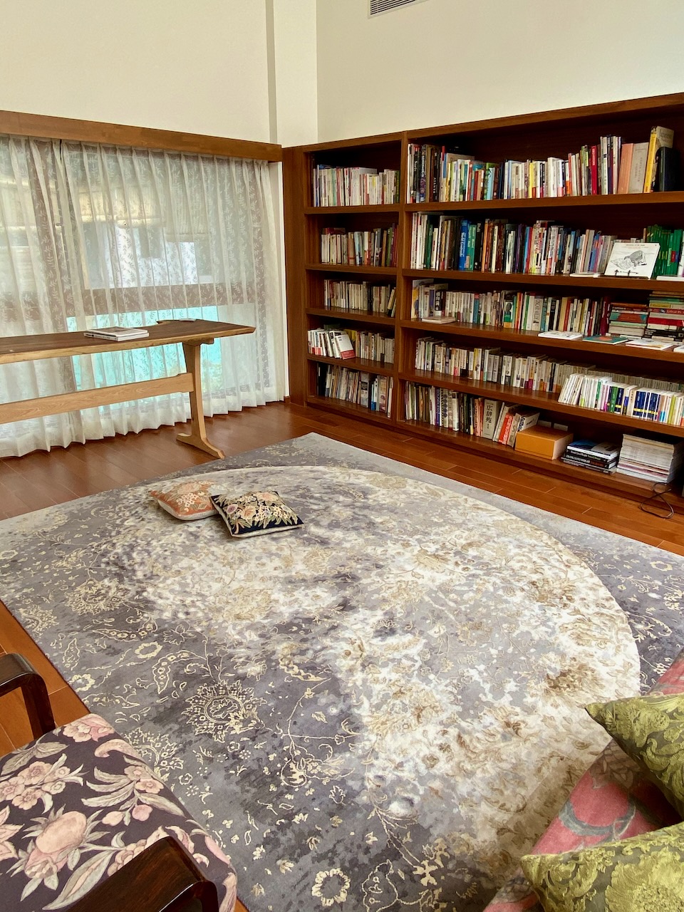 ◉今回、個人的にとてもうれしかったのは、家族4人での参加者の、2人の子どもたちが「月光ライブラリ」で、何時間も、くつろぎながら本を読んでくれていたこと。天窓から光が降り注ぐベッド、座りやすいソファー、立って本を広げられる背の高いデスク、靴を脱いで寝転べるカーペット……。