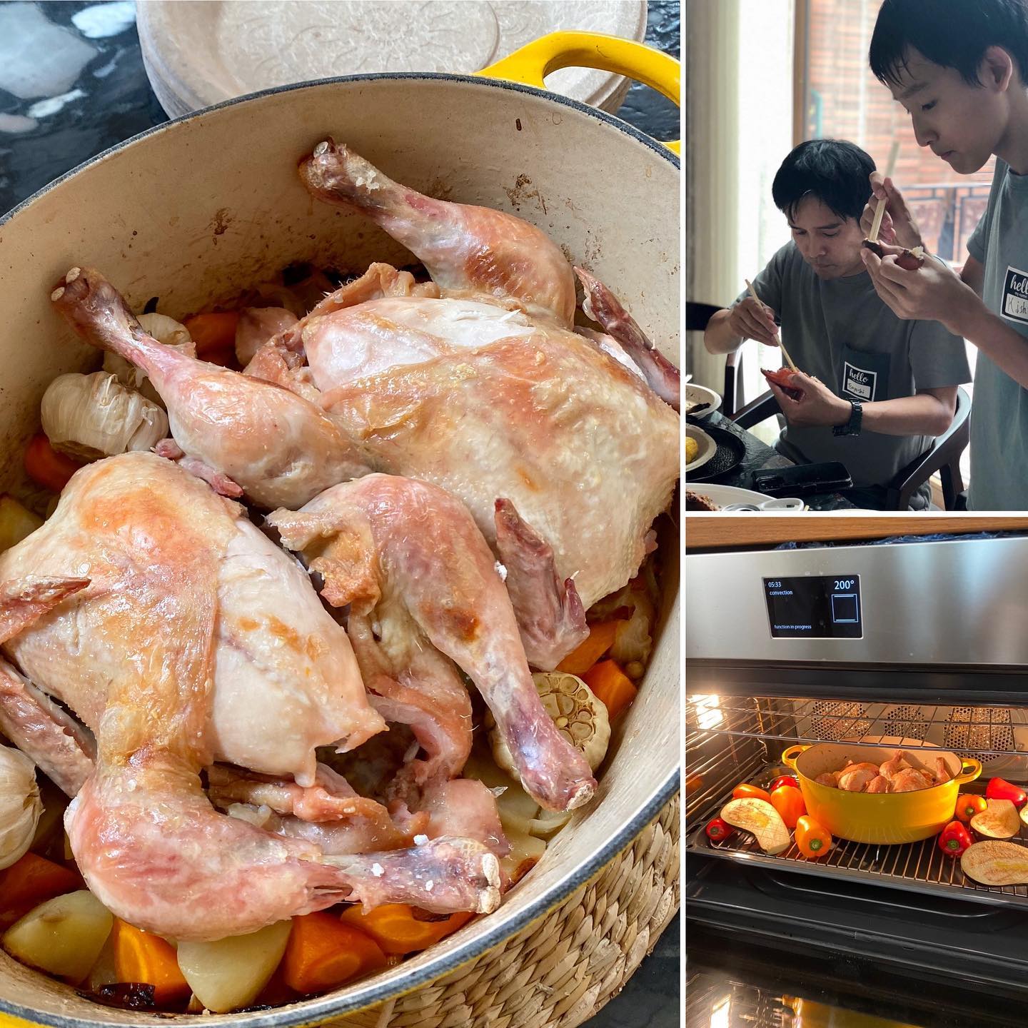 今回は男子2名にバーベキュー奉行を任命し、任せっきりに。一方、食材は参加者で分担して持ち寄った。焼きあがるまでにお腹が空きそうだったので、毎度おなじみ丸鶏のグリル(2羽)をあらかじめオーヴンで焼いておいた。その他、多すぎるほどの食材が持ち込まれて、焼くも食べるも体力勝負。