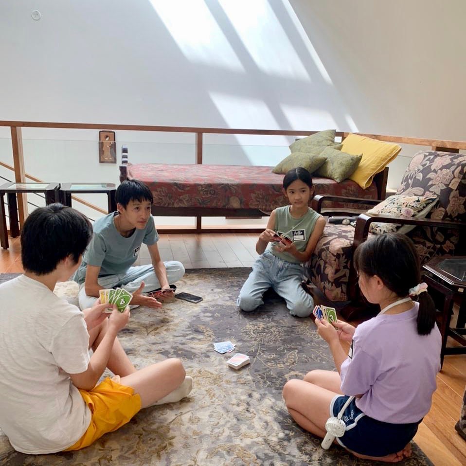 更には今回、広大な庭を活用してもらうべく、スポーツ道具を持参してもらっていた。アメフトの指導・実技に始まり、バスケットボールにバドミントン、果てはかくれんぼに鬼ごっこと、子供たち&一部大人は、ウギャウギャと叫びながら、走り回りながら、汗だくになって遊んでいた。