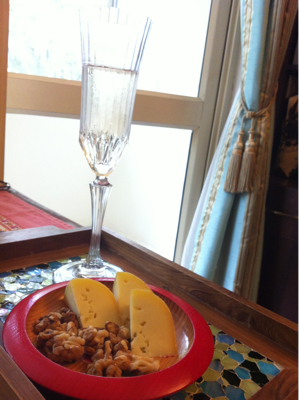 そしておはようございます、朝食です。食卓に、懐かしき枇杷(びわ)が! 枇杷といえば、インドとも関わりのある食べ物だ。