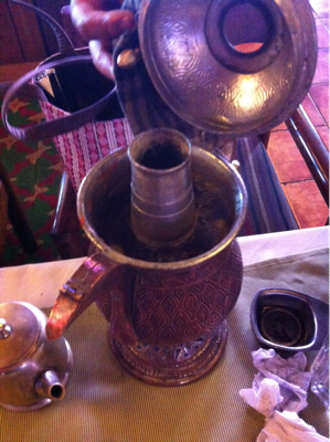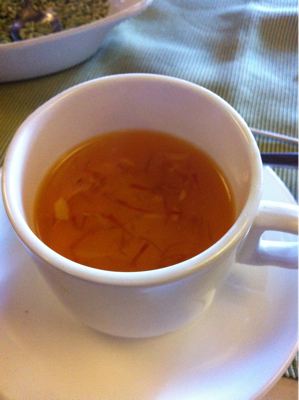 グリーンティに、サフランやカルダモン、アーモンドのスライスなどをいれて煮込んだヘルシーなお茶。