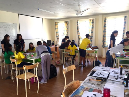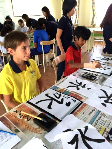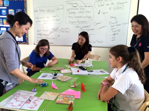先日、ジャパン・ハッバにてミューズ・クリエイションが出店していたブースに感銘を受けたというカナディアン・インターナショナルスクールの先生からの依頼で、今回、6年生の10名×2クラスを対象に、折り紙と書道を体験してもらう運びとなった。
