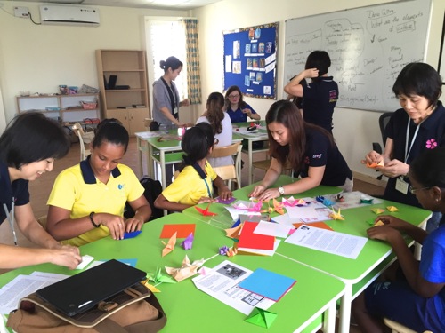 ●私は男の子5名&先生と鶴と駒のおりがみを折りました。日本人も在学しているからか「おりがみ」を知ってる子がほとんど。けれど折るのは初めての子が多かったのですが、museメンバーも多く、ほぼマンツーマンの体制がとれ、みんな時間内に仕上げることができました。日本の文化を知ってもらういい機会になったと思います。貴重な経験をありがとうございました。