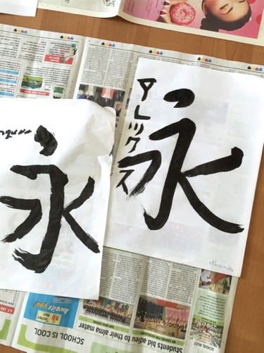 そんな中、アレックスは姿勢もよく、筆の運びも滑らかに、とても初めて漢字を書いたとは思えないうまさである。驚いた。思わず「書道、習ったら?」と勧めたくなってしまった。
