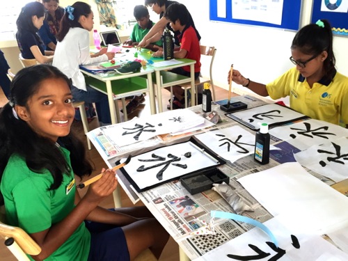 これはインド人の女の子が書いた文字。初めて書く漢字、初めての書道で、これほどまでに忠実に倣えるとは、驚きだ。